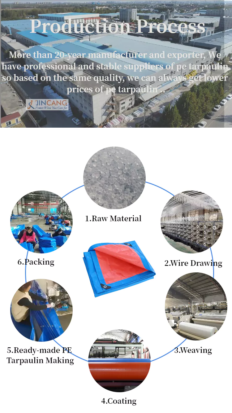 Jincang yra vienas iš profesionalių PE brezento ritinėlių gamintojų Kinijoje, 90 GSM Strip PE brezento ritinys yra supakuotas po ritinio. Plotis paprastai yra 1,83 m, 2 m, 4 m, 5 m, 6 m. Ilgis paprastai yra 63 m, 91 m, 100 m 200 m ir tt Ir mes taip pat galime pritaikyti pagal jūsų poreikius. Jis plačiai naudojamas lauko apsaugai, prekėms, statybvietėms, žemės ūkio tikslams ir laikinoms pastogėms uždengti.